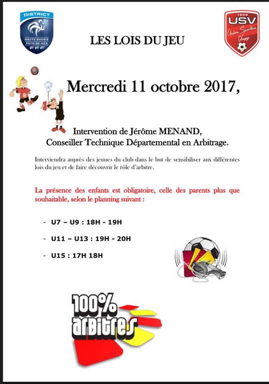 Une journée les lois du jeu sera organisée par l'US Vougy pour les enfants de catégorie U7 jusqu'à U15 le Mercredi 11 octobre 2017